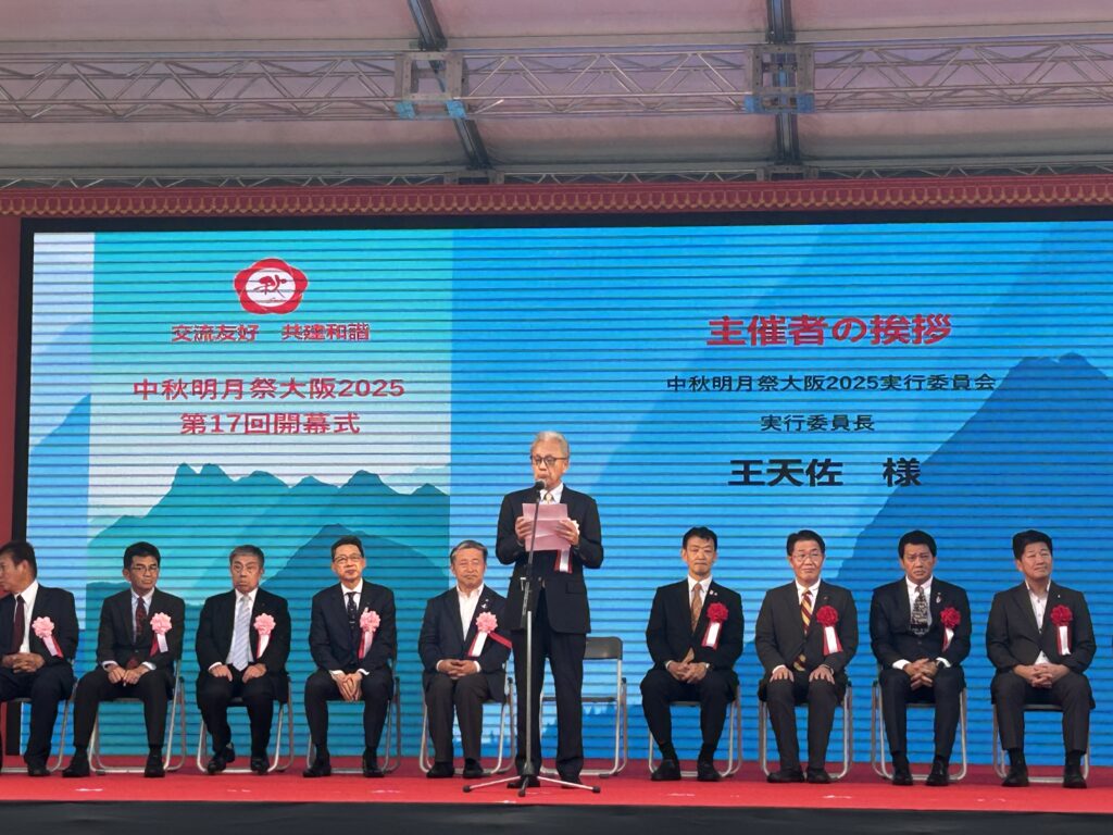 10月4日(土)~5日(日)の両日にかけ、大阪市中央区の”史跡難波宮跡“において、『中秋明月祭大阪2025』(主催・・中秋明月祭大阪2025実行委員会【構成団体・・大阪華僑総会・神戸華僑総会・京都華僑総会・西日本中華總商会・一般社団法人西日本中国企業連合会・一般社団法人四国華僑華人連合会・NPO法人大阪府日本中国友好協会・一般社団法人日中経済貿易センター・一般社団法人大阪中華北幫公所・一般社団法人関西中華總商会・一般社団法人日本関西福建経済文化促進会・西日本地区中国留学生学友会】、共催・・中華人民共和国駐大阪総領事館・大阪市、特別共催・・中国駐大阪観光代表処)が開催され、日本華僑華人聯合総会より陳隆進会長も来賓として招かれ出席した。