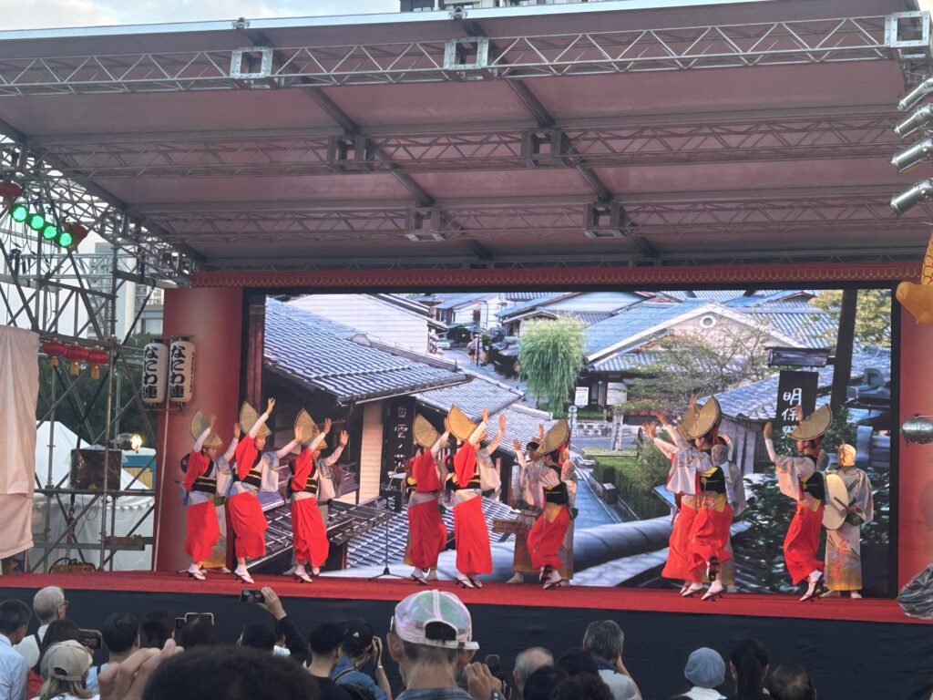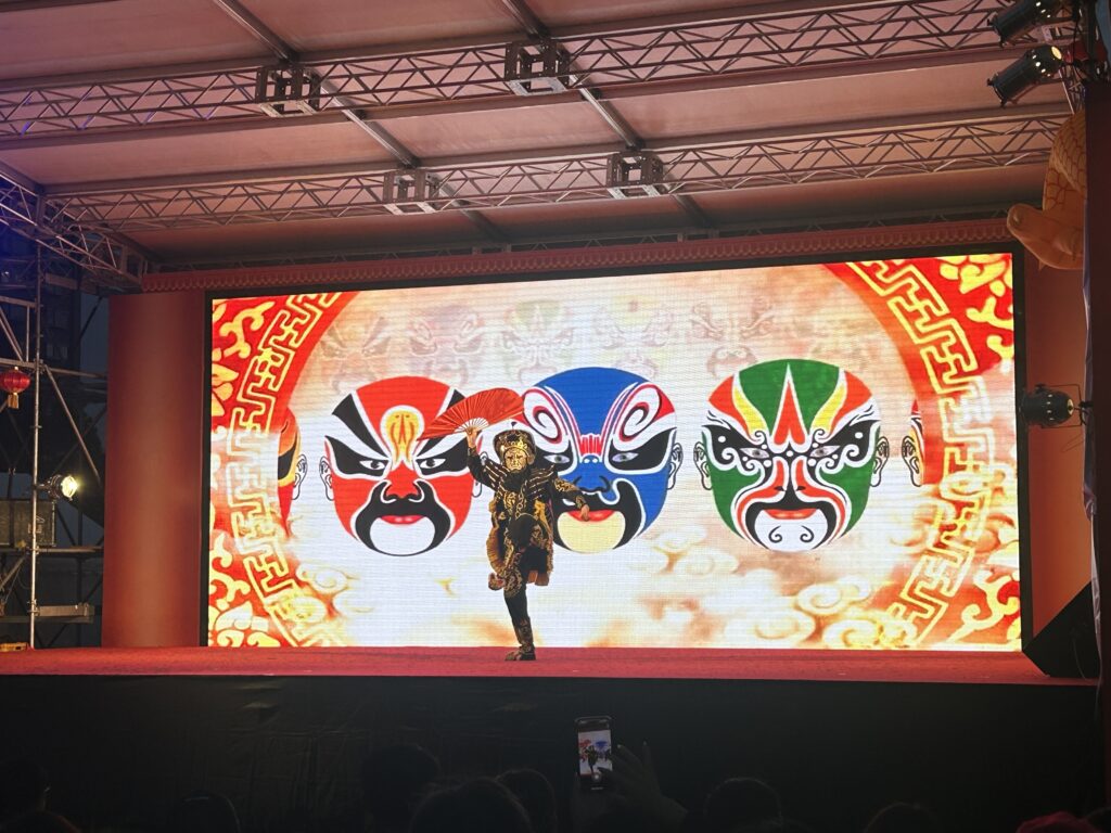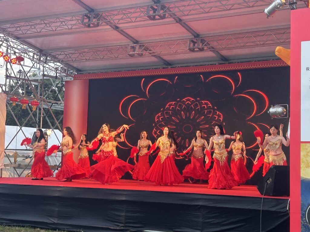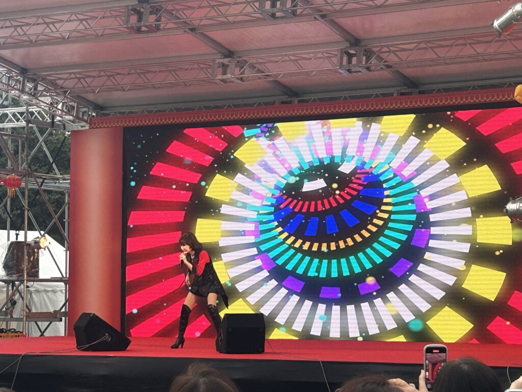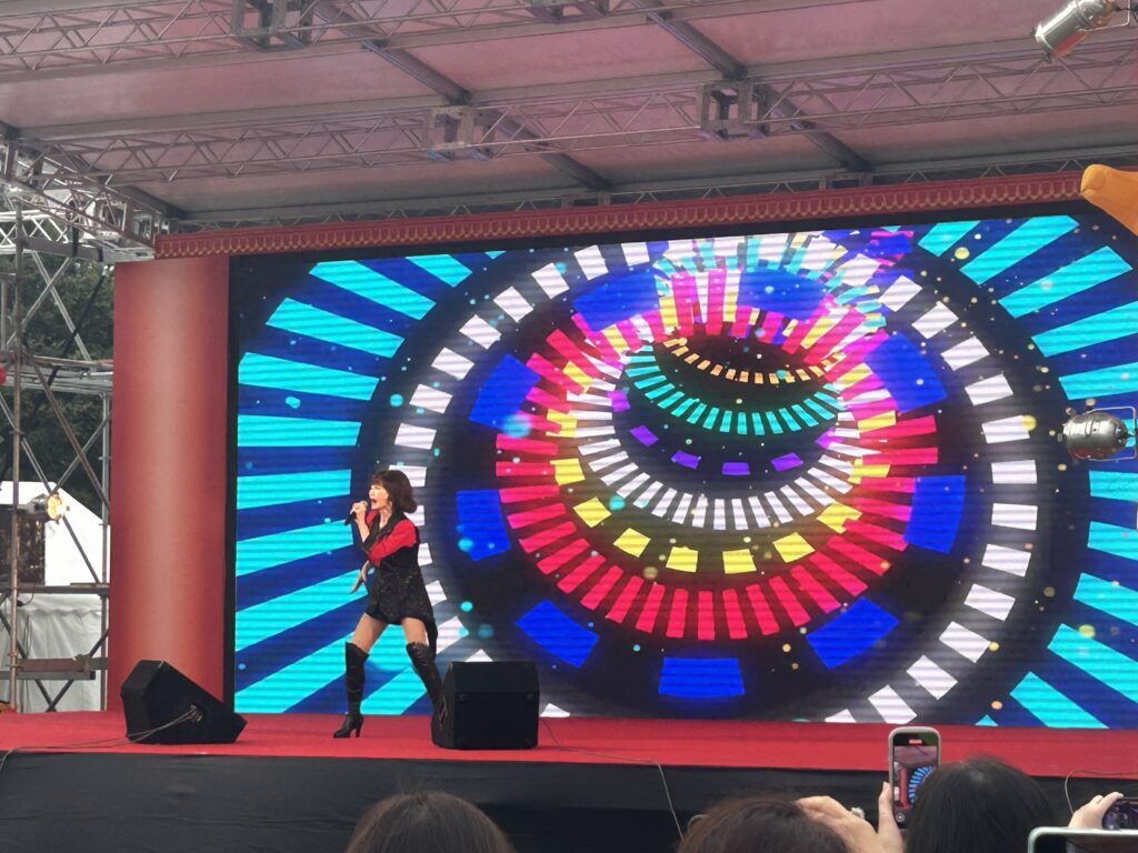 舞台上では2日間にわたり、獅子舞、変面、合唱、民族舞踊、太極拳、京劇、阿波踊り、ダンスなど様々な演目の披露があった。1日目には歌手の山本リンダさんが出演し、名曲の『狙いうち』を始め数曲披露され、その歌声を聴きつけ、更に多くの来場者が詰め寄って鑑賞された。