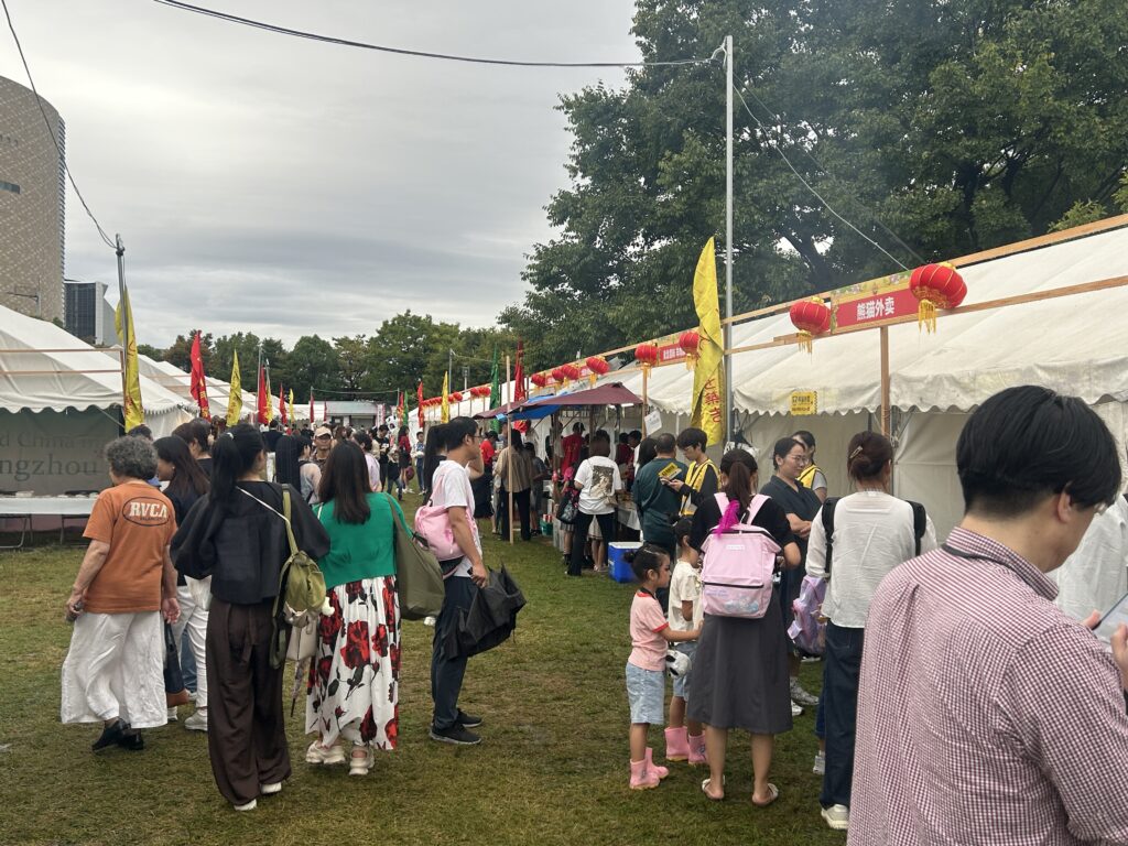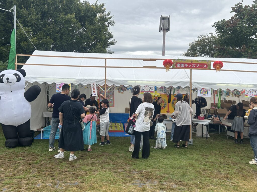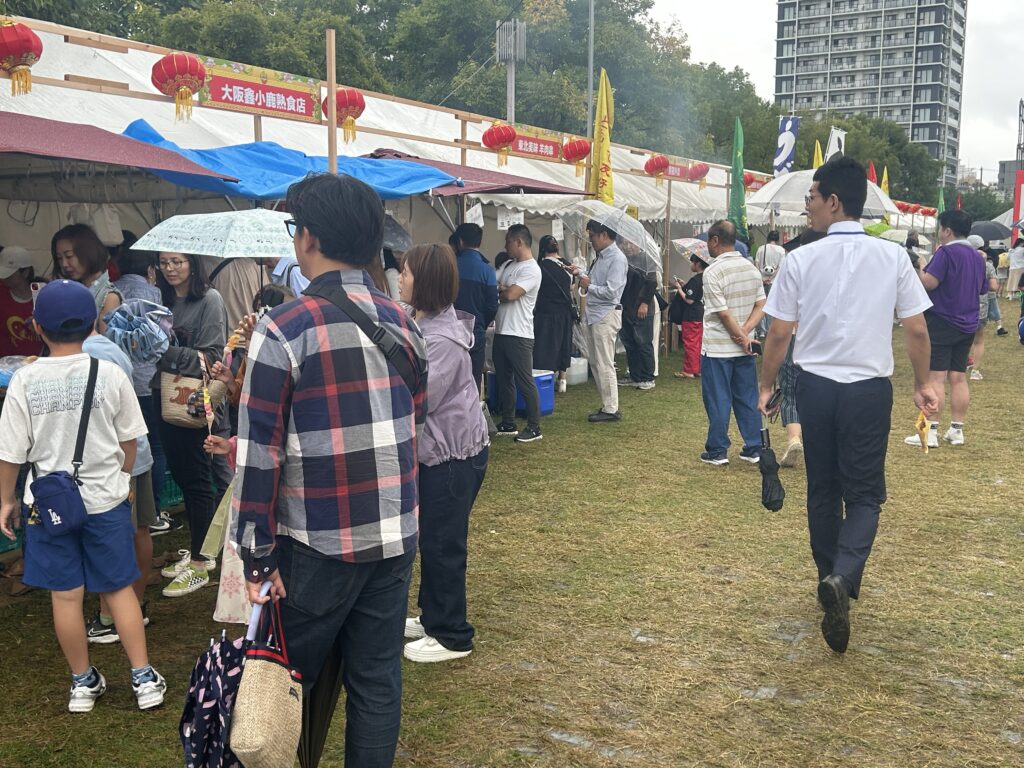 会場内には多種多様な飲食ブースが並び、行列ができるお店も多数見られた。また物販ブース、各団体の活動紹介や企業宣伝などの情報ブースが設けられ多くの来場者が訪れた。京阪神華僑総会ブースでは3僑会共同で “振る舞い紹興酒”を行い、初めて紹興酒を飲んだ方からは「飲みやすく美味しい」と好評を得た。また、毎年好評の楽園キッズブース(大阪北省同郷会)では多くの子供たちがゲームやおもちゃを手に取り、賑わっていた。